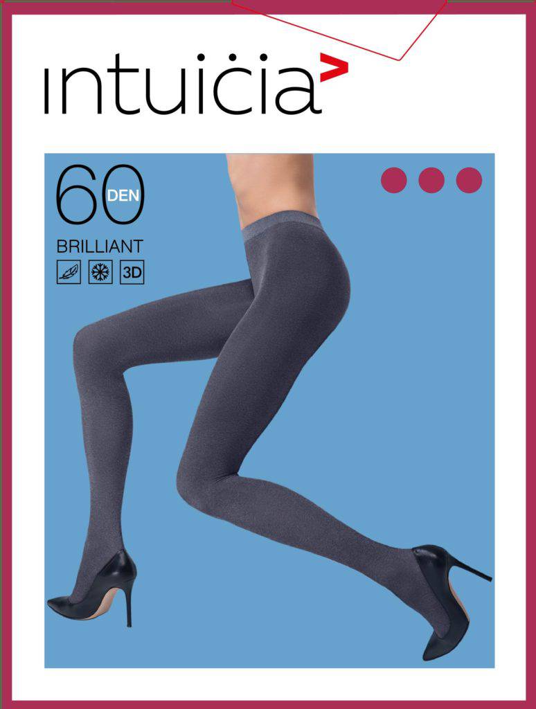BRILLIANT 60 – dense warm tights with a classic fit at the waist. Tights with the effect of the second skin, which is provided by 3D viscous, in which the elastane is knitted in each row; thanks to this, extreme elasticity is achieved. They evenly stretch, perfectly fit the figure, repeat the shape of the body and emphasize the slim fit. Tights with moderate gloss and velvety. Stimulate blood circulation in the legs. Soft and comfortable to wear.