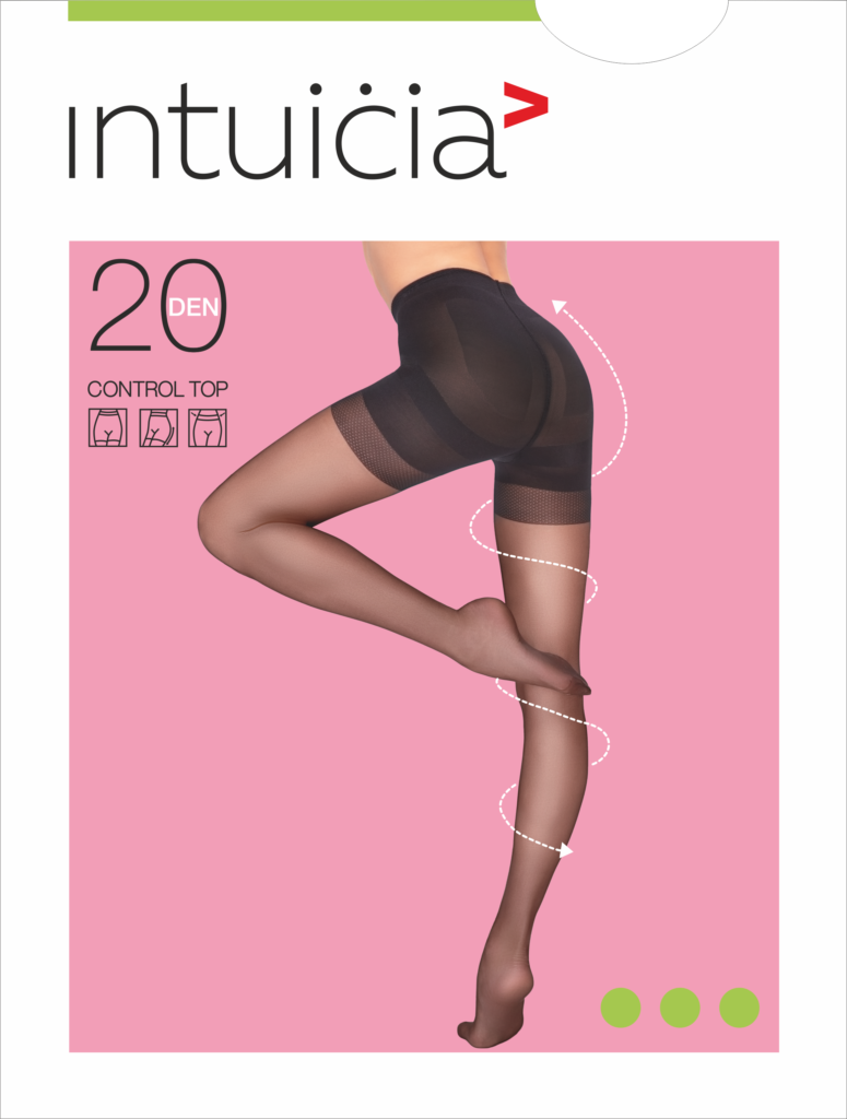 CONTROL TOP 20 – thin semi-matte transparent elastic tights with an emphasis on the buttocks. They tighten the abdomen, adjust the slim fit and provide easy compression throughout the leg. With a classic fit at the waist. Special elongated shorts of high density model the figure in the hips, abdomen and buttocks, and create the perfect slim fit. Push-up effect (lift the buttocks) to create a toned figure. Specially distributed pressure on the leg, greater than the lower leg in the lower leg and weakening to the top reduce leg fatigue during the day.