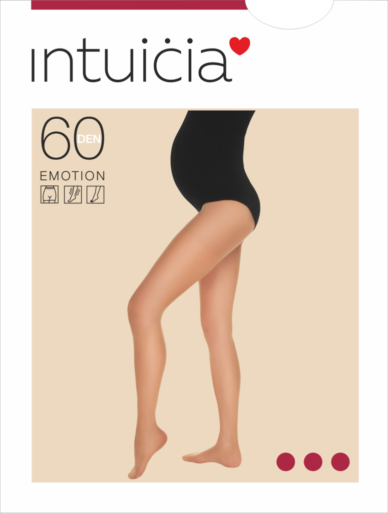 EMOTION 60 – dense semi-matt elastic tights for expectant mothers. They have a high waist, comfortable for all trimesters. Special shorts with a bandage effect provide a support function for the abdomen and back. A wide comfortable anatomical belt does not exert excessive pressure on the stomach.