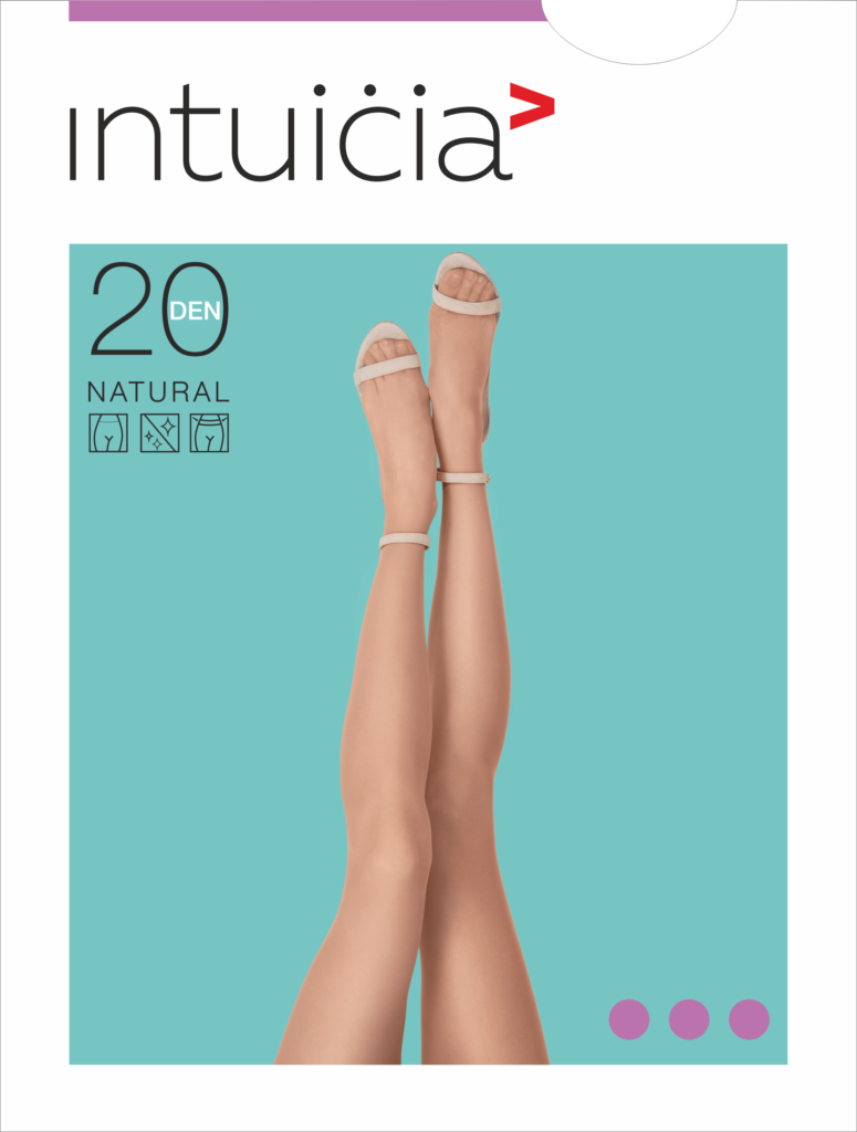 NATURAL 20 – thin elegant absolutely matte (no gloss) tights with the effect of ‘ make-up’, (light cosmetic effect of powder). The vizone and diano colours give the skin a natural, noble and natural look. Great fit and have a very smooth structure. Classic fit at the waist. Made of special yarns using the Lycra FREEFIT technology that makes them lighter and more breathable than other tights. Perfectly fit under the spring-summer period. Comfortable non-twisting belt. Resistant to contamination