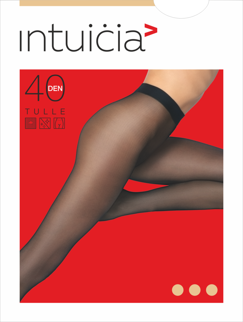 TULLE 40 – smooth semi-gloss elastic tights of medium density without gloss. Made in the technique of veil weaving (microgrid). Combine the qualities of a smooth canvas and a traditional mesh. The material allows the skin to breathe, as it is a multi-layer net weave. This technique has a velvety effect and is able to hide a small venous network on the legs and minor skin irregularities. Resistant to clings, do not give arrows, worn for a long time. They have a classic fit at the waist and a soft comfortable belt.