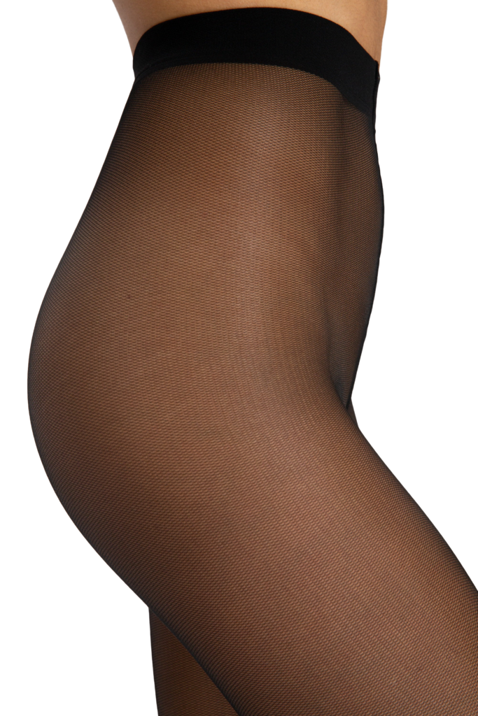 TULLE 40 – smooth semi-gloss elastic tights of medium density without gloss. Made in the technique of veil weaving (microgrid). Combine the qualities of a smooth canvas and a traditional mesh. The material allows the skin to breathe, as it is a multi-layer net weave. This technique has a velvety effect and is able to hide a small venous network on the legs and minor skin irregularities. Resistant to clings, do not give arrows, worn for a long time. They have a classic fit at the waist and a soft comfortable belt.